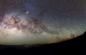 Abb. 13: Michael Kunze und Ehefrau besuchten im Frühjahr 2014 unter anderem für eine Woche die Insel Maui/Hawaii. Hier vom Haleakala eine Sicht auf die Milchstraße über dem Mauna Kea. Canon EOS 550Da, 24-mm-Objektiv (Blende 5,6), Nachführung mit iOptron StarTrekker. Insgesamt wurden 60 x 60 s bei ISO 1600 belichtet.